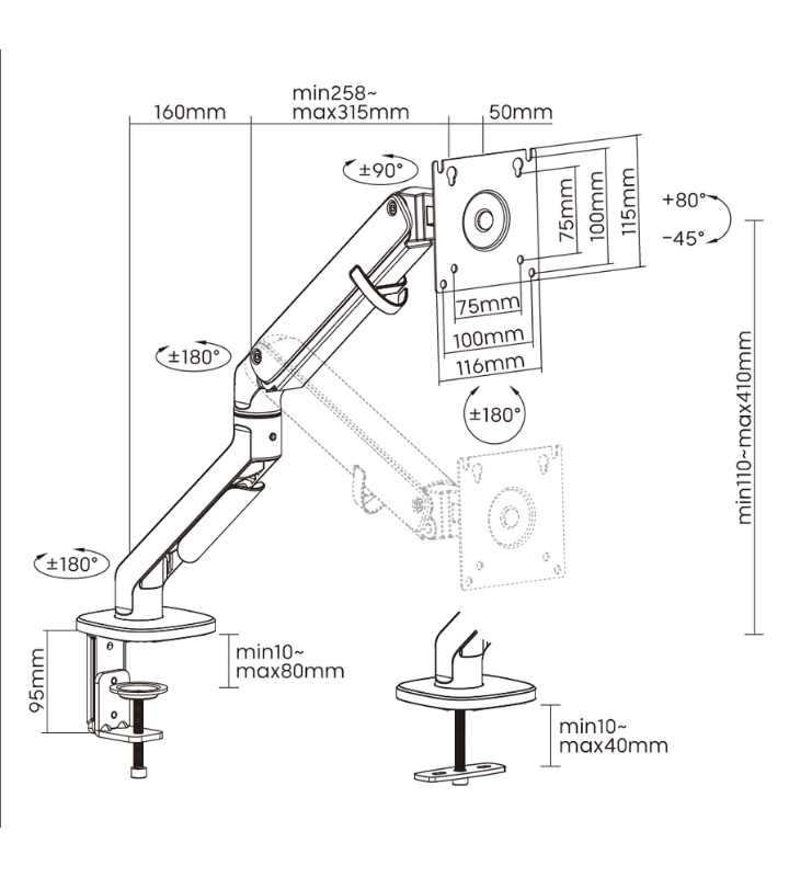 - REDUCE NECK AND BACK PAIN - Positioning your computer monitor for ergonomic comfort helps reduce the risk of health issues whilst sitting for long hours at your desk. Gas Powered Monitor Arm is the perfect solution, providing height adjustment with wide range of viewing angles to suit your needs. Optimising your workstation and screen positon correctly can give a huge positive impact on your productivity and health.