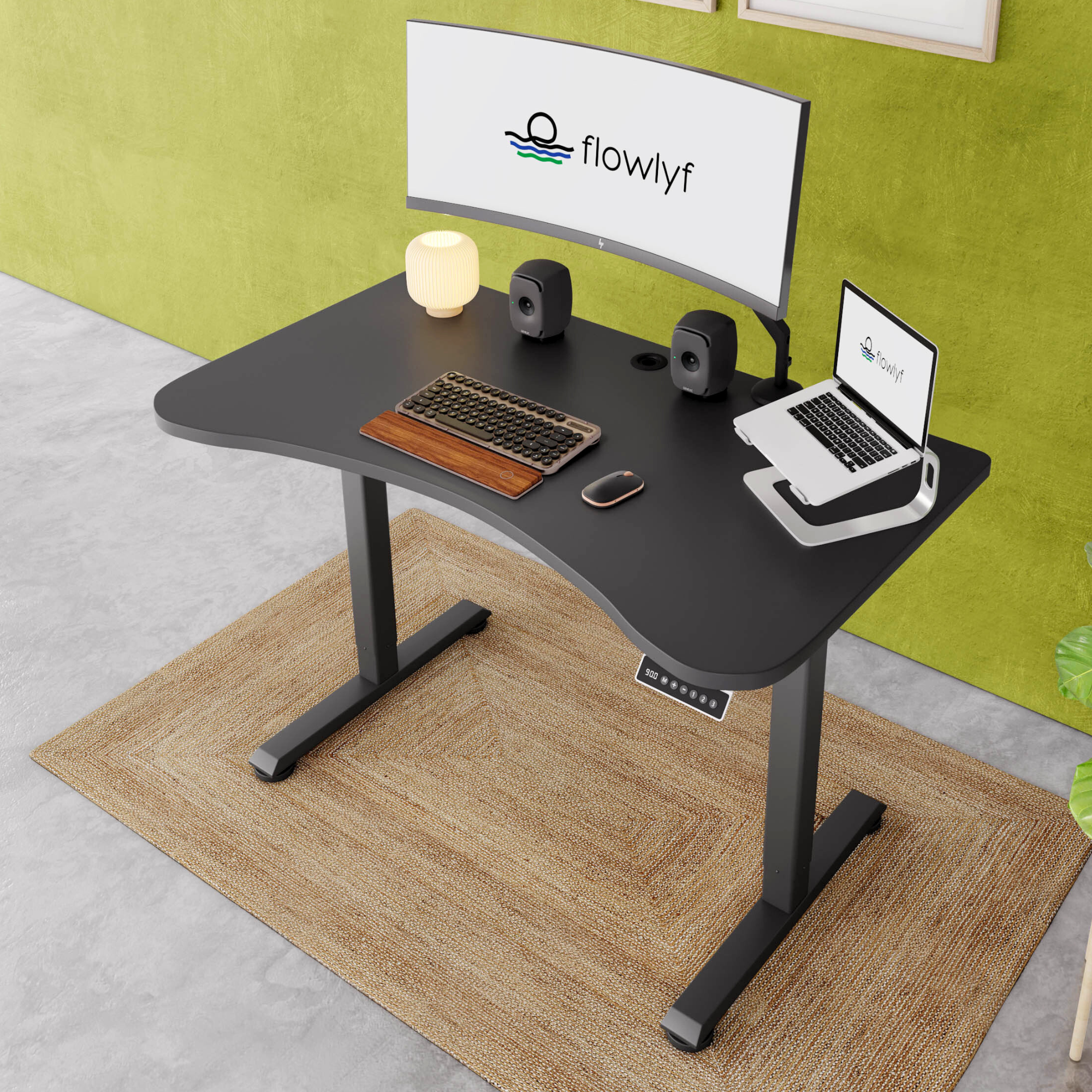 Flowlyf-FDGO- Electric Height Adjustable Desk- 2yr WARRANTY | 120 x 75 CM | 3 Memory PRE Set - Controls | Engineered Wood|2 Stage -1 Motor | 80 KG Wt | Sit Stand Range 73 cm-117 cm