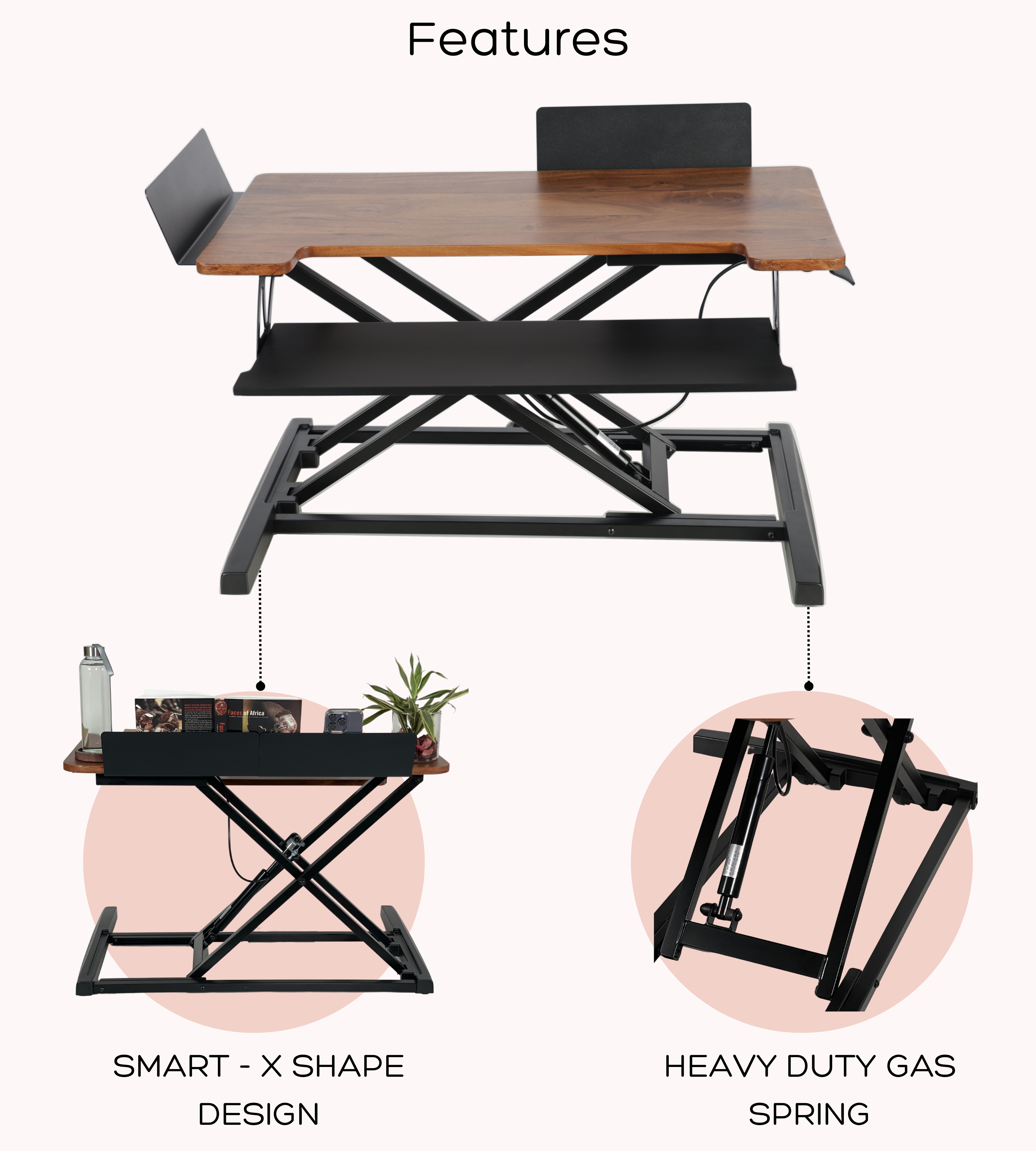- [HEIGHT ADJUSTABILITY WITH EASE] - Changing posture has never been so easier, Now go from sitting to standing in an effortless motion. The Gas spring lifting Mechanism makes this movement seamless even with a laptop or a monitor on it.