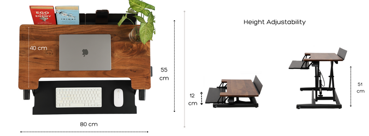 Flowlyf Solid Wood Standing Desk Converter | Height Adjustable |1 Year Warranty | Sit-Stand Range 11 – 51 cm Gas Spring | Easy Installation| 80 x 55 cm (with Keyboard Tray)